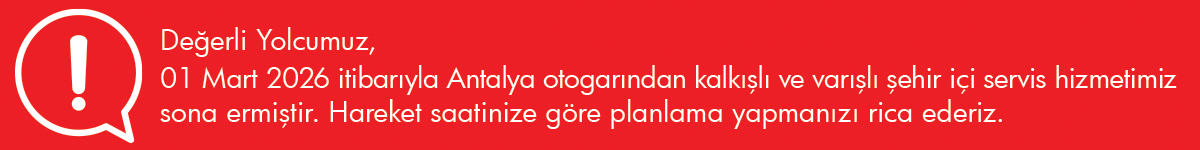 | Seyahatleriniz için iletişim ve müşteri memnuniyeti sağlamak | İletişim Bilgileri (Cep Telefonu Numarası, E-posta) Müşteri İşlem Verileri (Çağrı merkezi kayıtları, Fatura, senet, çek bilgileri, Sipariş bilgisi, Talep bilgisi vs) Lokasyon Verileri(otobüs konum bilgileri) |
